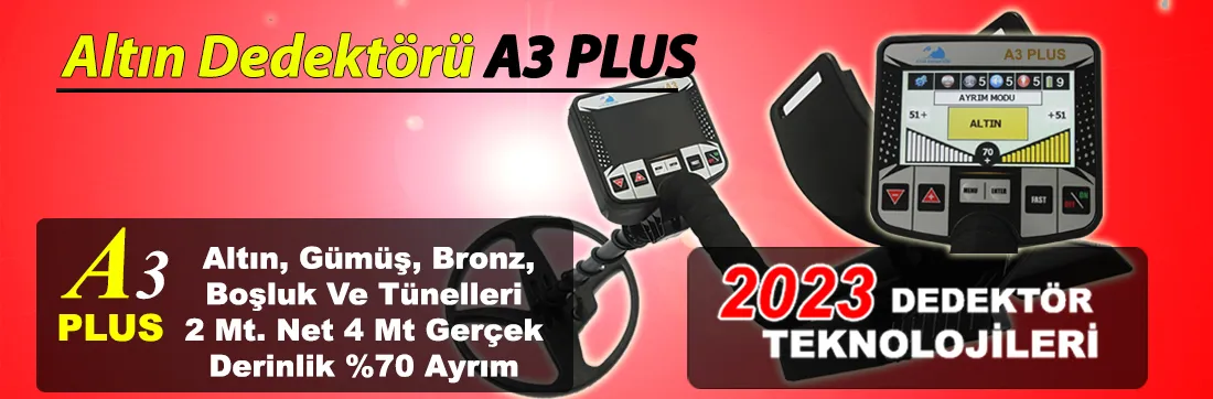 A3 Plus Dedektör, altın ve define aramalarında yüksek performans sunan, gelişmiş teknolojiye sahip bir cihazdır. 2 metre net ve 4 metre maksimum derinliklerde altın, gümüş, bronz, tunç gibi değerli metalleri tespit etme özelliği ile definecilerin ve hazine avcılarının ilk tercihlerinden biridir.