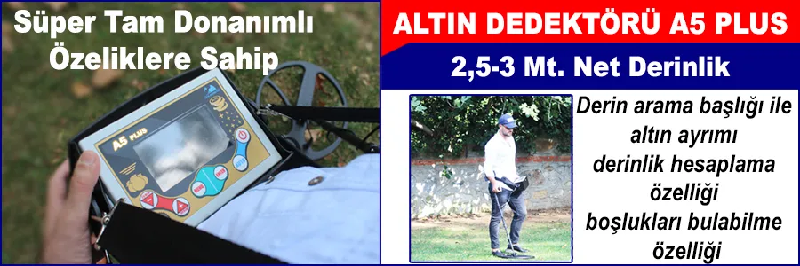 A5 Plus Altın Dedektörü, 2023 teknoloji serisi ile altın ve define aramalarında rakiplerinden bir adım önde olmanızı sağlayan üstün özellikli bir cihazdır. Hem fiyat hem de performans açısından kullanıcıya avantaj sunan A5 Plus, toprak ve kaya içerisindeki altın, gümüş, bronz gibi değerli metalleri derinlik hesaplamasıyla tespit edebilir.