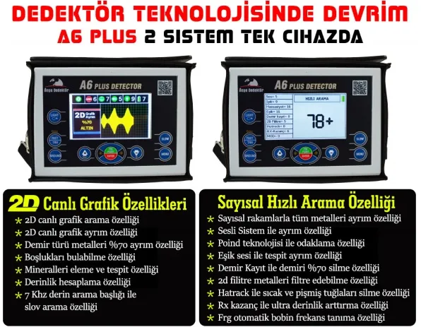 A6 Plus, yüksek hassasiyet, derinlik ve güvenilir metal ayrımı ile öne çıkar. Hem altın ve define aramalarında hem de arkeolojik kazılarda üstün performans sağlar. Rakip cihazlara göre daha düşük maliyetli ve %50’ye varan fiyat avantajıyla öne çıkar.