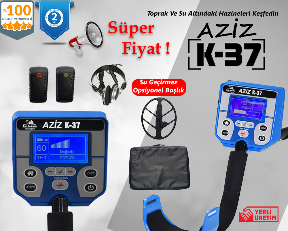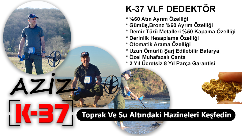 Asya Dedektör K-37, altın ve define aramalarında yüksek performans sağlayan LCD ekranlı, metal ayrımlı bir cihazdır. Hem derin hem de yüzeysel tespit özellikleri ile 25 cm’den 1,5 metreye kadar altın, gümüş, bronz ve tunç metalleri güvenle bulabilirsiniz. Aziz K-37, define işaretleri olan bölgelerdeki saklanmış hazineleri ve objeleri garanti ile tespit edebilme yeteneğine sahiptir.