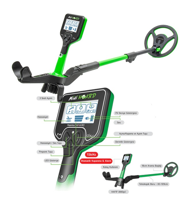 Makro Midi Hoard, çocukların kolaylıkla kullanabileceği şekilde tasarlanmış olsa da, bir yetişkin dedektörünün tüm önemli özelliklerine sahiptir:
